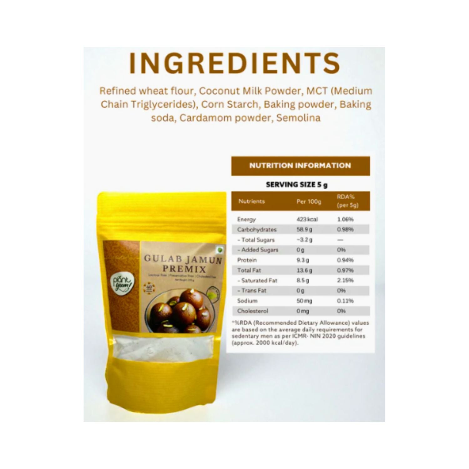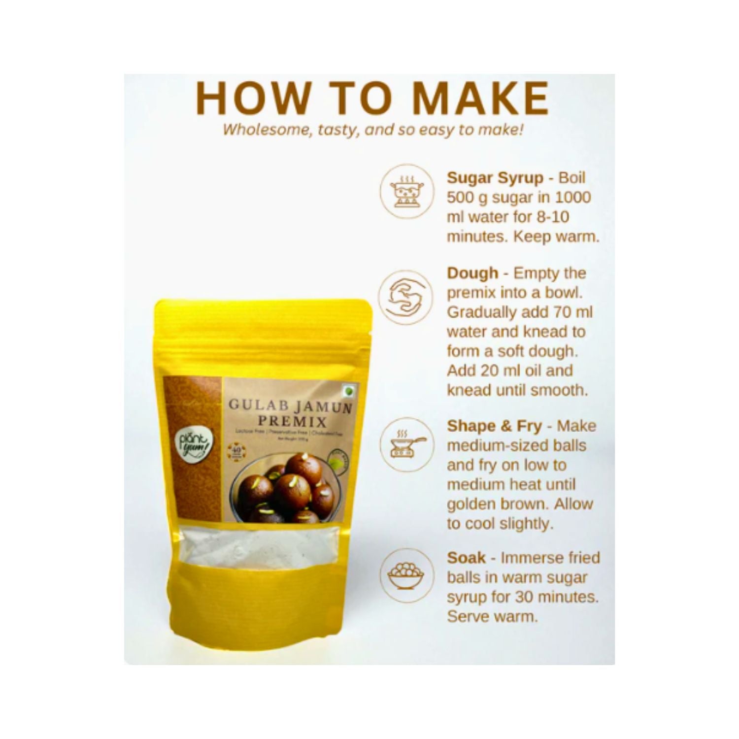 Plant Yum - Gulab Jamun Premix, Dairy-Free, Dessert Mix, 200g