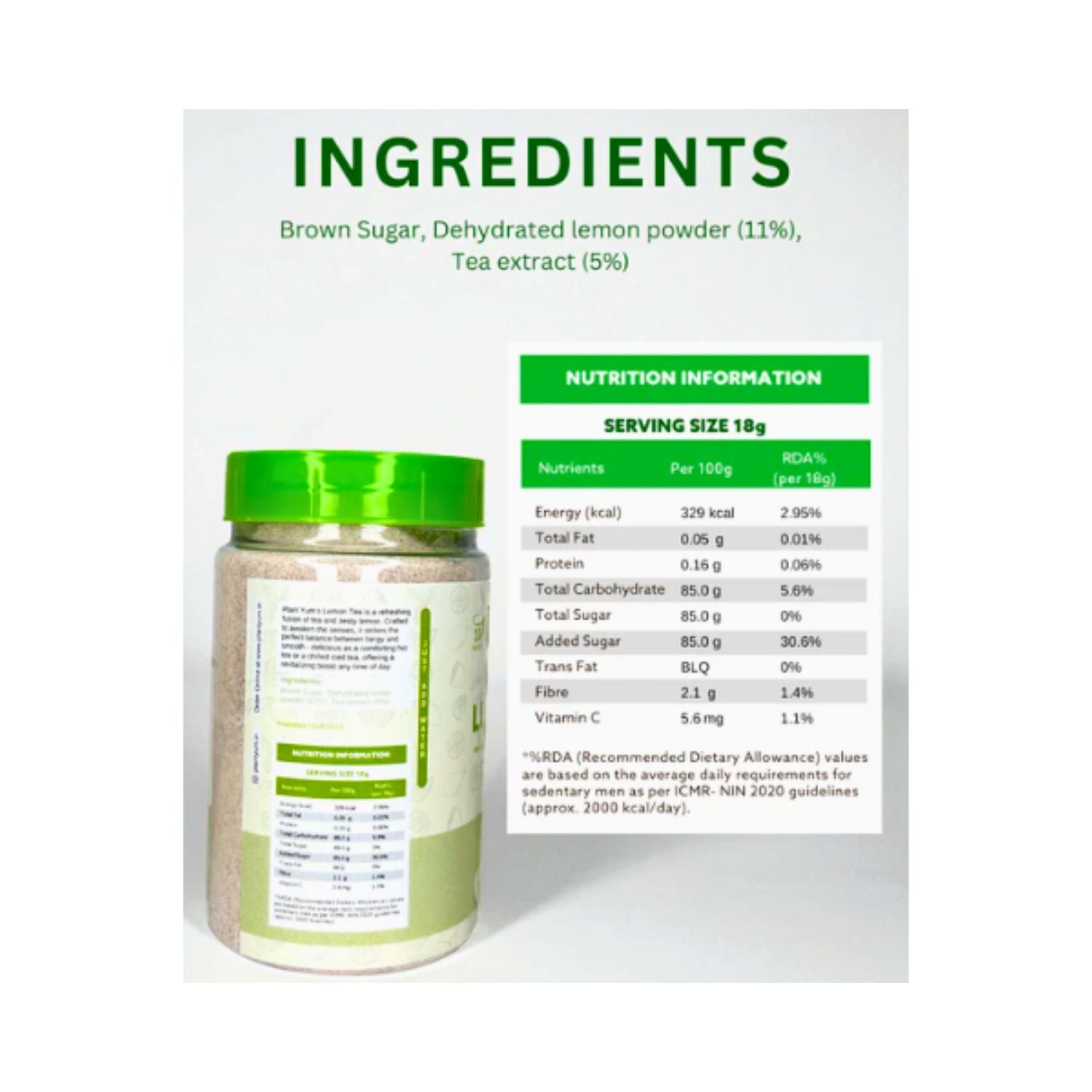 Bright, tangy, and refreshing, our Instant Lemon Tea Premix is made with real lemon powder for an authentic citrus flavour. Free from artificial flavours and colours, it’s your perfect pick-me-up, whether you enjoy it hot for comfort or iced for a cooling treat. Net weight - 180g. Makes 10 servings